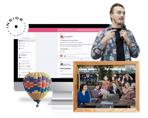 La communauté Inside Freelancing francophone se réunit sur un espace communautaire en ligne coordonné par 2 coachs qui te guideront toi et tous les membres pour avancer dans votre projet entrepreneurial.